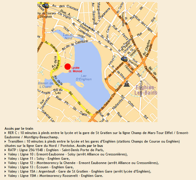 Plan d'accès: http://www.lyc-monod-enghien.ac-versailles.fr/contacts/Plan-d-acces (site du Lycée)