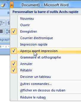 bien rajouter à cette barre rapide de Word ou Excel: