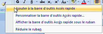 clic sur petite flèche à droite de la barre rapide